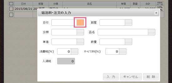 【最初に必ず行う設定2】の「宿泊料金の設定」の設定にしたがって、自動で入力されます。